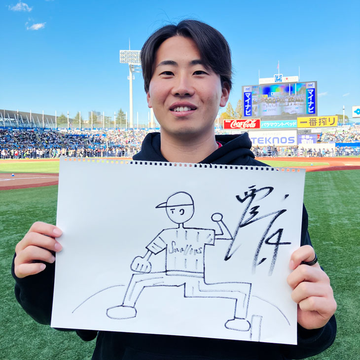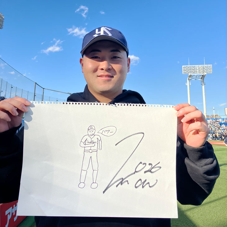 ファン感謝DAY2024 presented by マイナビのステージイベント「グッズ買って欲しい選手」にて、観客からの最も多くの拍手で選ばれた髙野選手の直筆イラストと、拍手は少なかったが独特な世界観のある西舘投手の直筆イラストがデザインされたグッズを受注販売いたします。