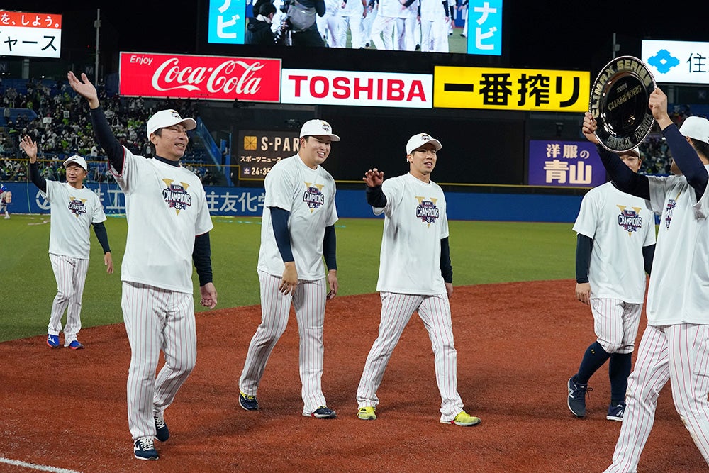 12日(金)、神宮球場での読売ジャイアンツとの2021 JERA CS セ ファイナルステージ第3戦。0対1の7回、青木選手の2点タイムリーで逆転すると、8回に追いつかれるも、最終回は守護神・マクガフ投手が三者凡退に封じ、2対2の引き分け!SMBC日本シリーズ2021進出を決めました!!