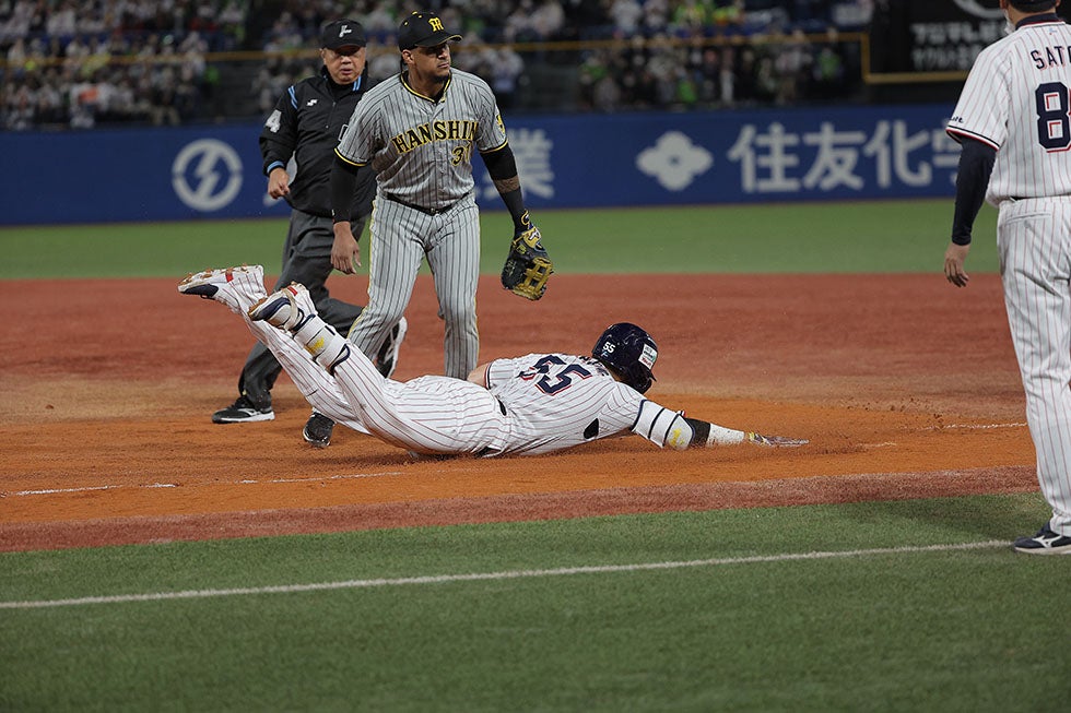 小川泰弘投手が7回1失点の力投、オスナ選手が初回に先制の3ランの活躍!CS初戦を快勝で飾る!