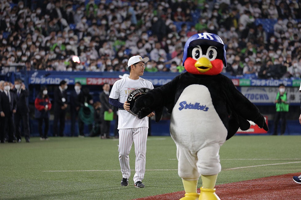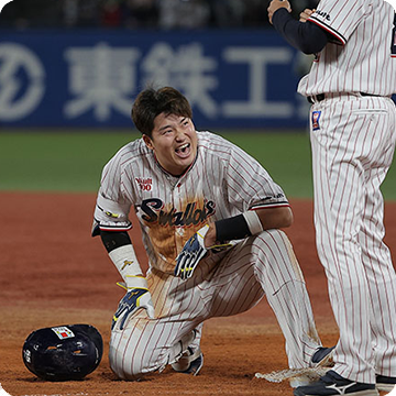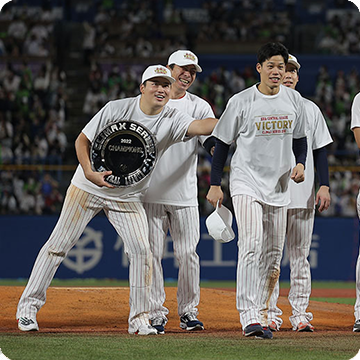 14日(金)、神宮球場での阪神タイガース戦。0対3の7回、村上選手のタイムリー内野安打などで、5点を奪い逆転すると、8回は山田選手のタイムリー二塁打で貴重な追加点を奪います!6回以降は鉄壁のリリーフ陣が無失点に封じ、6対3で逆転勝利!SMBC日本シリーズ2022進出を決めました!