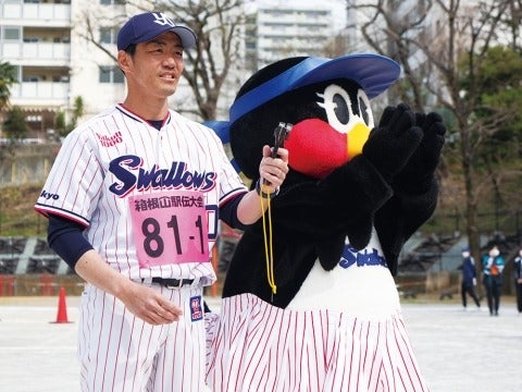 選手OBや球団マスコットが、商店街などが行っている手作りイベントに参加しています。ヤクルト球団は、神宮球場近隣地域「地元」を大切にしたいと考えています。