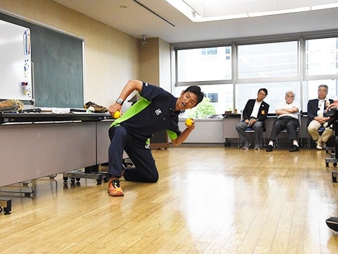 「つばめ野球教室」はスワローズOBを講師として全国各地で実施されています。ヤクルト球団では、この野球教室の運営に協力しています。