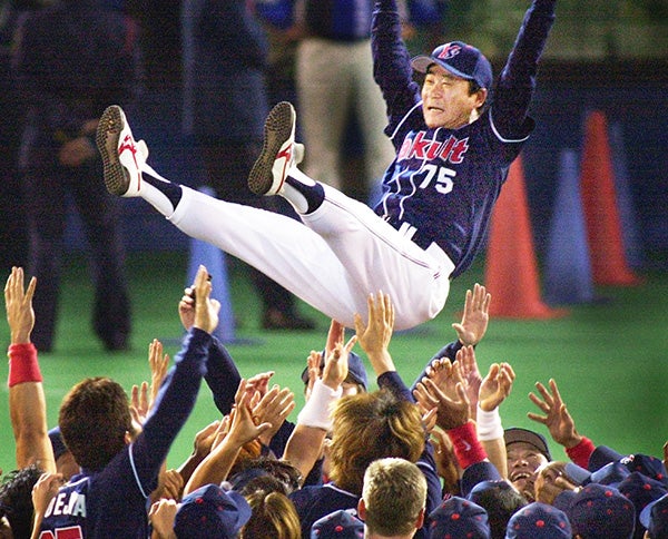 真中 満 野村克也監督の下、外野手としてリーグ優勝に貢献した。2007年には代打起用回数98回、代打のみで31安打を記録し(日本記録)、代打の神様と称された。※在籍期間:選手1993~2008年、監督・コーチ2009~2017年 |