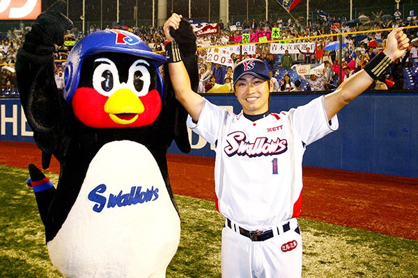 宮本 慎也 不動の遊撃手としてゴールデングラブ賞を10回受賞(三塁手としての受賞を含む)。打者としても、2001年に67犠打のシーズン日本記録を樹立し、2012年には2,000本安打を達成した。※在籍期間:1995~2013年、コーチ2009~2013年、2018~2019年 アレックス・ラミレス 来日1年目から主に5番打者として活躍しリーグ優勝・日本一に貢献。2007年には外国人選手・右打者として史上初のシーズン200安打を達成した。ホームランを放った後のつば九郎とのパフォーマンスはファンを喜ばせた。※在籍期間:2001~2007年 |