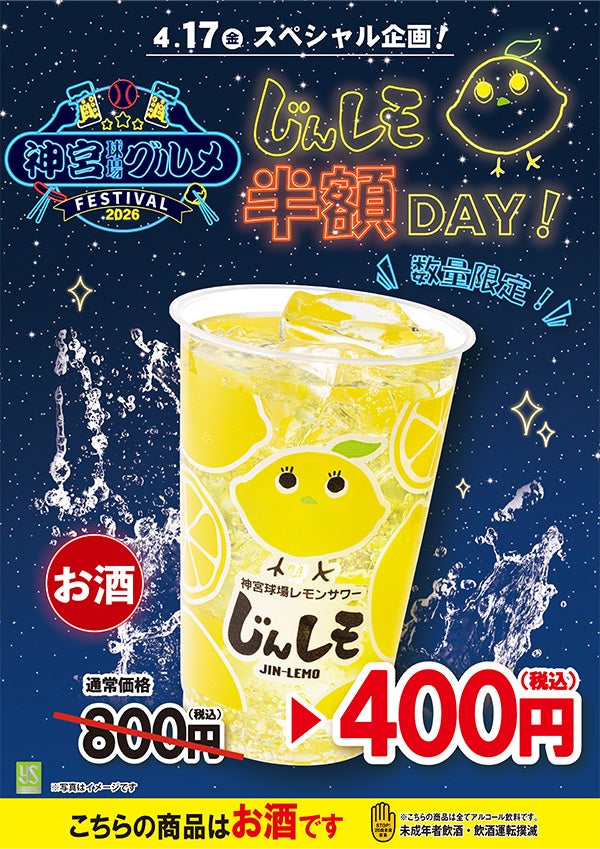 - 「じんレモ半額DAY」は、じんレモを安全にご提供するため、 販売できる売り子の人数が限られております。 そのため、時間帯によってはご提供までにお時間をいただく場合や、 一時的に販売を休止する場合がございます
