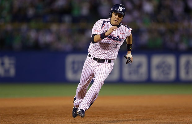 | 2014 | ヤクルト | .305 | 142 | 580 | 86 | 177 | 10 | 69 | 62 | 43 | 3 | 8 | 3 | 2 |