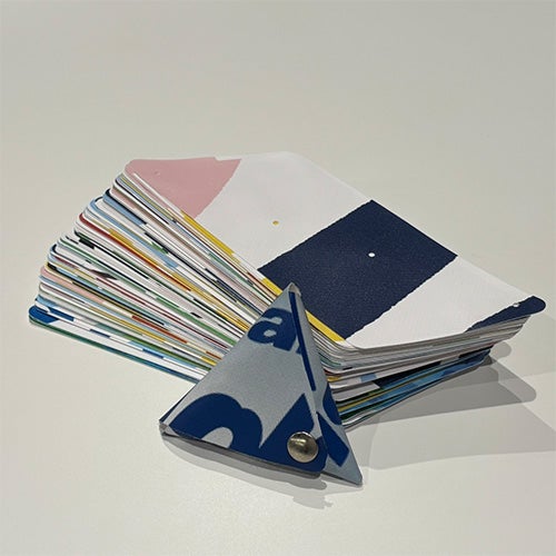 過去イベントで使用した懸垂幕(廃材)を使用してコインケースを作成するワークショップとなります。