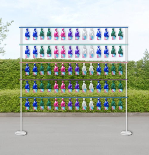イベントビジュアルに合わせたブルー、ピンク、パープル、グリーン、ホワイトのカラーで球場正面を彩ります。