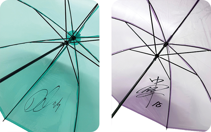 使用するアンブレラは選手のサイン入り!