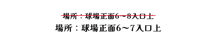 | 注意事項 | ・当日ご来場いただくことが条件となります。後日のお渡しはできません ・試合中止決定の時点で配布も終了とさせていただきます(開門前に中止決定となった場合、配布は行いません) |