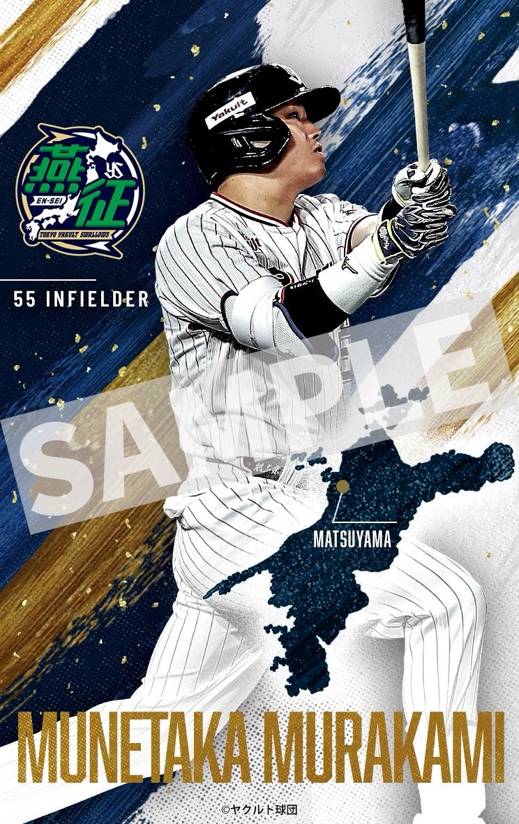 兵庫県出身の山田選手や、松山坊っちゃんスタジアムで自身通算200号ホームランを達成した村上選手など、燕征企画でしか手に入らない特別なカードです。