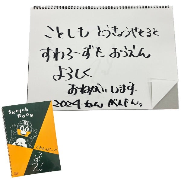 つば九郎「しんねんのごあいさつ」 直筆スケッチブック 1名様つば九郎からのお年玉企画として、Swallows CREW会員の皆さまへの「しんねんのごあいさつ」を4ページにわたって書いたスケッチブックを特別にプレゼント!※ポイント不要で応募できます