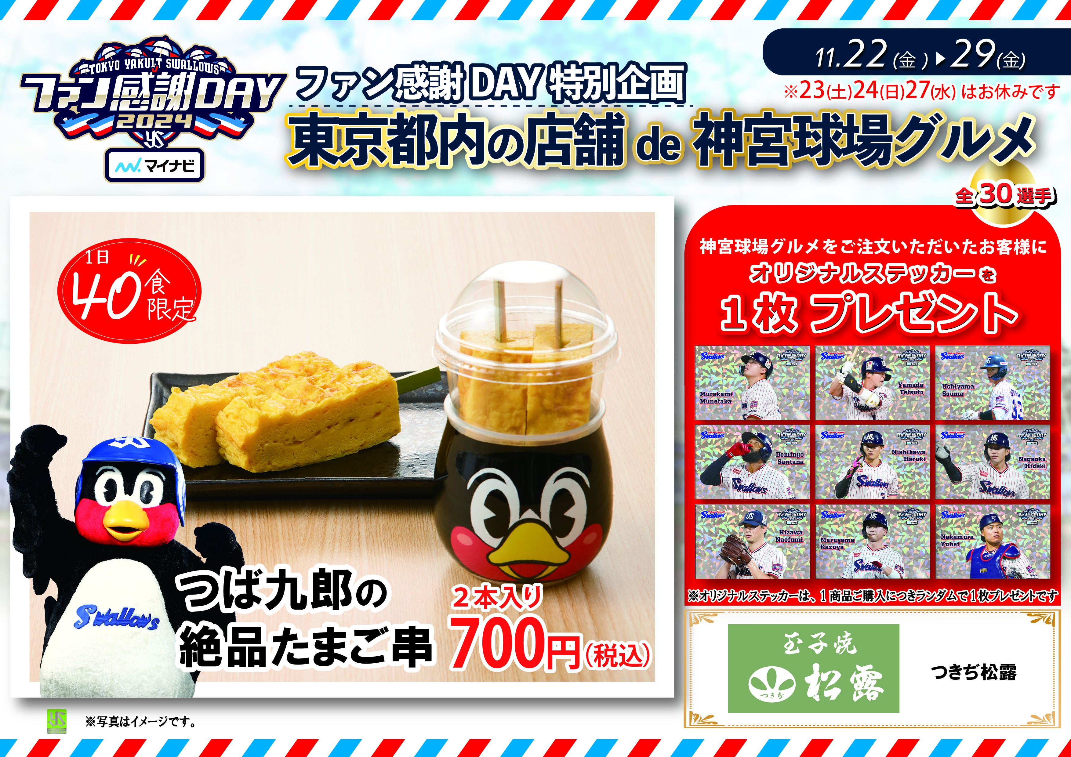 11月22日(金)~11月29日(金) ※対象店舗の営業時間に準じます ※22日(金)は販売なし、24日(日)はお休みです |