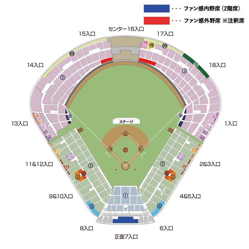 ※外野エリア含む全席種の入場券をお持ちの方が対象となります ※立ち見となります。座り込んでの観覧はできません ※エリアの一部はテントでステージが見えにくい場合がございます |