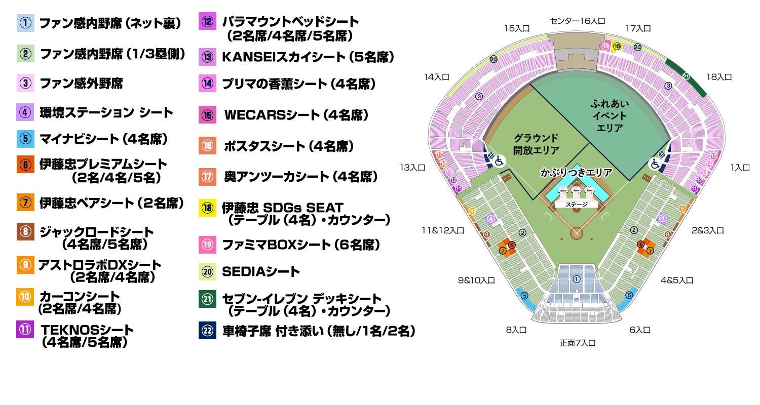 | ⑦ | 伊藤忠ペアシート(2名) | 3,000円 | ○ |