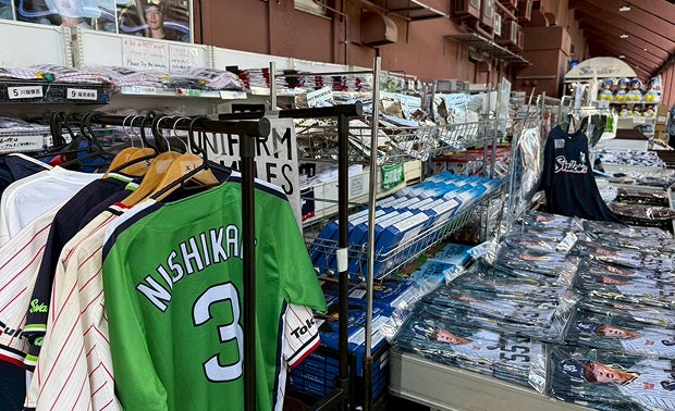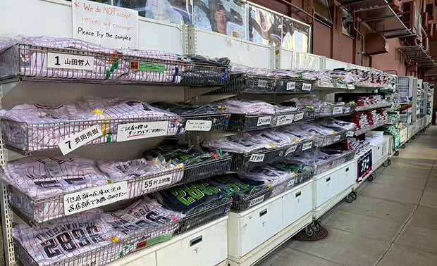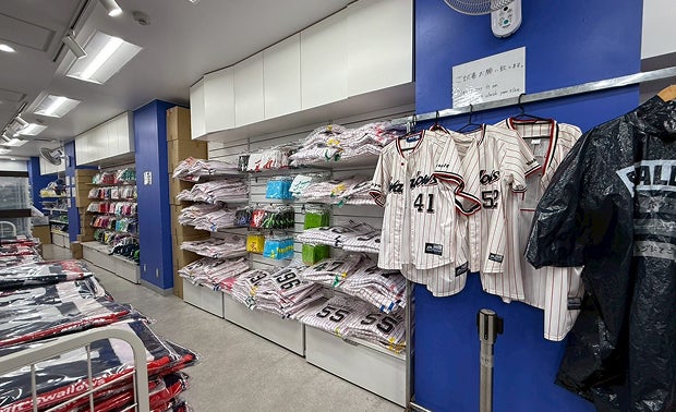 定番の応援グッズやレプリカユニホームなど、初めての観戦でもここに来れば観戦グッズ一式が揃います。