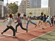 その後、2チームに分かれて投げた距離で得点を競うゲームを実施。児童たちは今日習ったことを思い出しながらボールを投げ、ゲームは大盛り上がりとなりました。