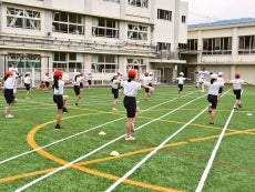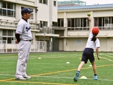 河端氏と徳山氏が品川区立戸越小学校で投げ方指導!