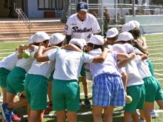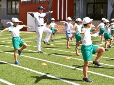 9日(水)、元選手で現・球団職員の度会博文氏と河端龍氏が東京都江東区にある区立第五大島小学校を訪問。子供たちへ正しいボールの投げ方を指導しました。