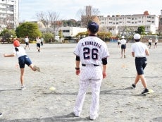 18日(水)、元選手で現・球団職員の河端龍氏が東京都八王子市にある市立松が谷小学校を訪問。子供たちへ正しいボールの投げ方を指導しました。
