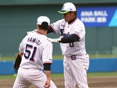 ブルペンにはイノーア投手、石川投手、近藤投手らが入り調整。また、マクガフ投手、スアレス投手が打撃投手を務めました。