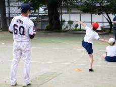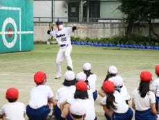 三輪氏が都内の小学校4校を訪問!550名の児童に対して、正しい投げ方を指導!