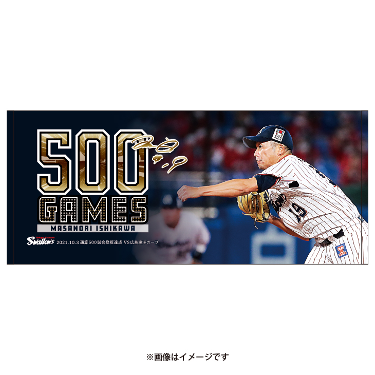 2021年10月3日(日)対広島東洋カープ戦で石川選手が通算500試合登板を達成しました。スワローズの投手陣を支え続ける「小さな巨人」の大記録を祝し、記念グッズを販売します。ぜひこの機会にお買い求めください。