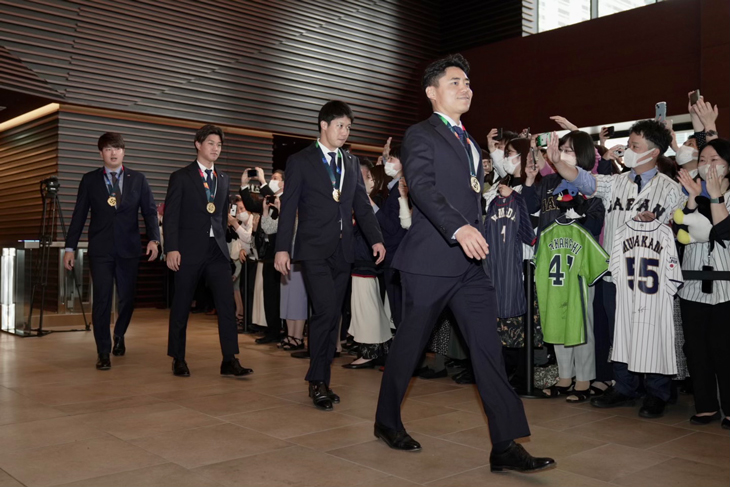 「みなさん、たくさんのご声援本当にありがとうございました。無事に世界一をとることができました。本当に帰ってきてからたくさんの人にありがとうという言葉だったり、感動したよ、という言葉だったり、たくさんの声をかけていただき、本当に頑張ってよかった、野球をやっていてよかったと思いました。また、僕たちからたくさんの人に応援してくださってありがとうと、感謝を伝えたいと思っています。これからシーズンが始まるので、もう一回スイッチを入れなおして3連覇、日本一奪還に向けて頑張りたいと思います。引き続きご声援よろしくお願いします」