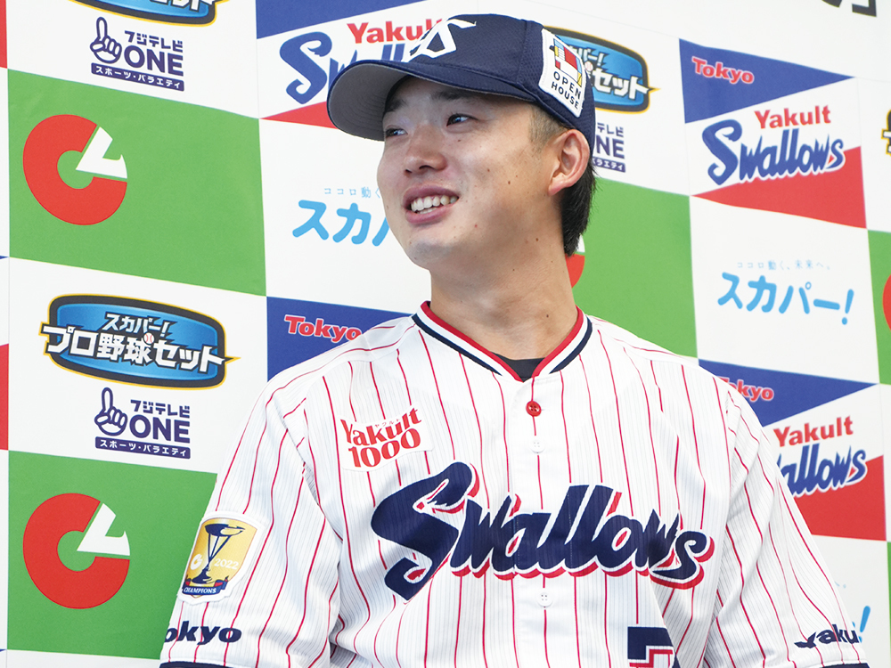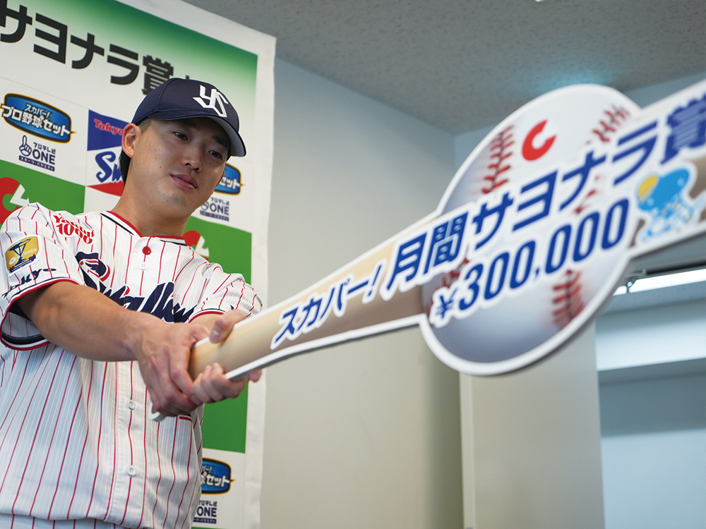 長岡秀樹選手が「5月度スカパー!サヨナラ賞」に選出されました。長岡選手は5月5日(金)の横浜DeNA戦、9回裏に二死一塁から右翼席へのサヨナラ2点本塁打を放ち、初受賞となりました。