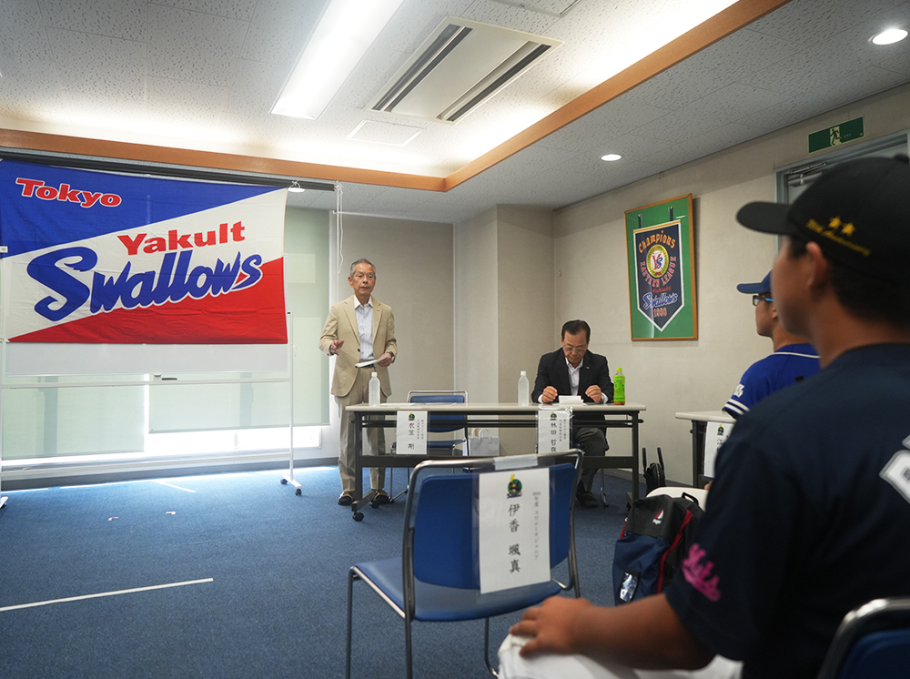 18日(金)、埼玉県戸田市の東京ヤクルトスワローズ戸田寮にて、2023年東京ヤクルトスワローズジュニアの結団式が行われました。