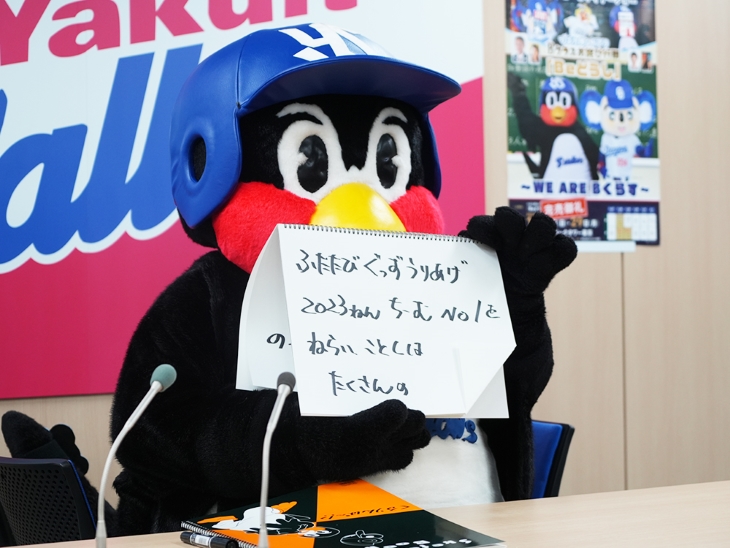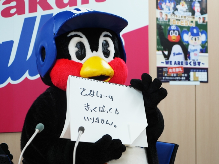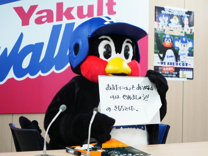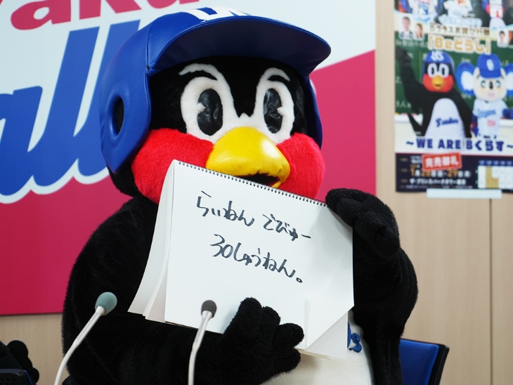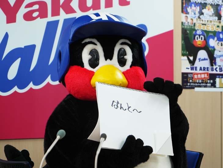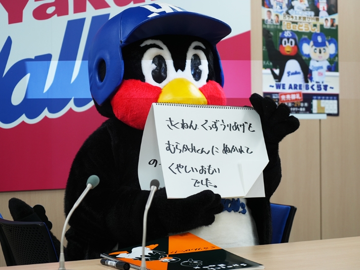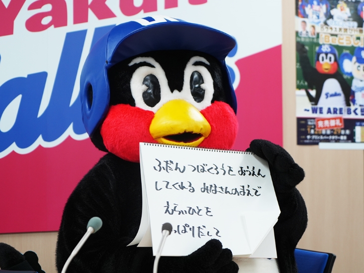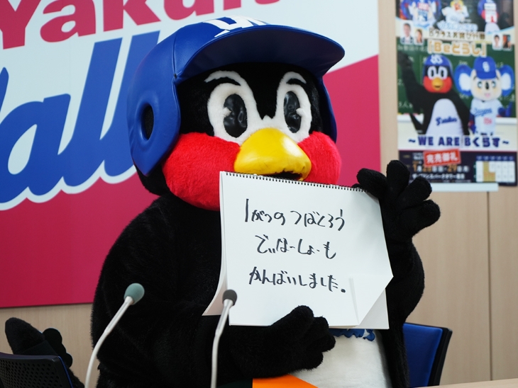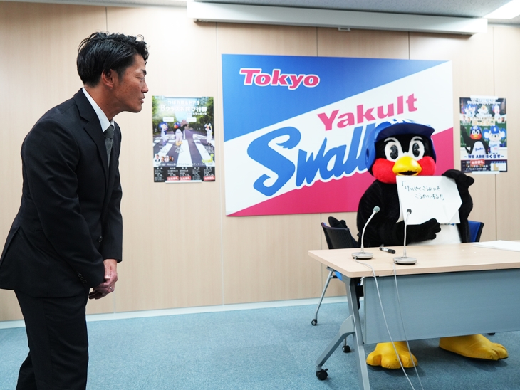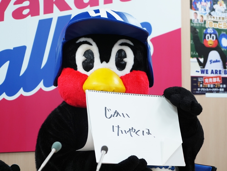 14日(木)、都内の球団事務所でつば九郎と契約更改を行いましたので、お知らせいたします。
