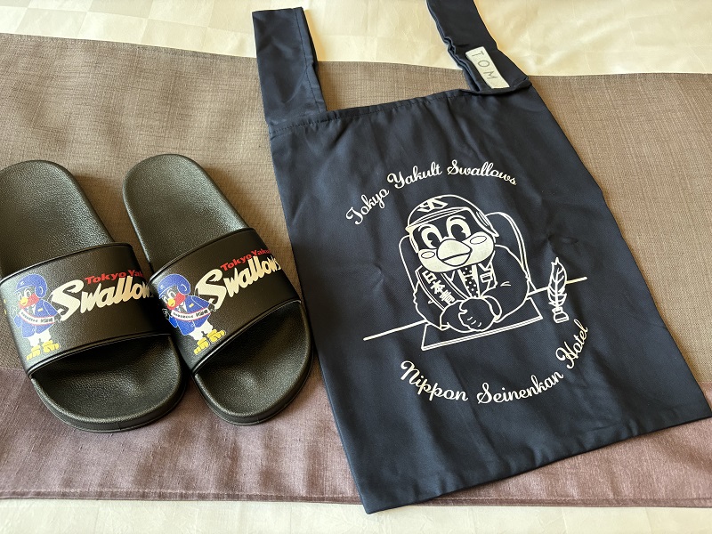 | 特典3 | お持ち帰りOK!スワローズ応燕宿泊プランオリジナルグッズ (つば九郎スポーツサンダル、つば九郎支配鳥エコバッグ) ※スポーツサンダルはフリーサイズ(27cm)となります |
