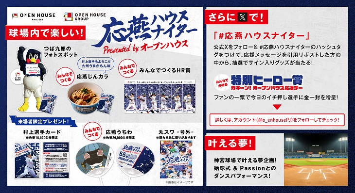 7月19日(金)横浜DeNAベイスターズ戦(18:00試合開始 神宮球場)にて、「応燕ハウスナイター presented by オープンハウス」を実施します。