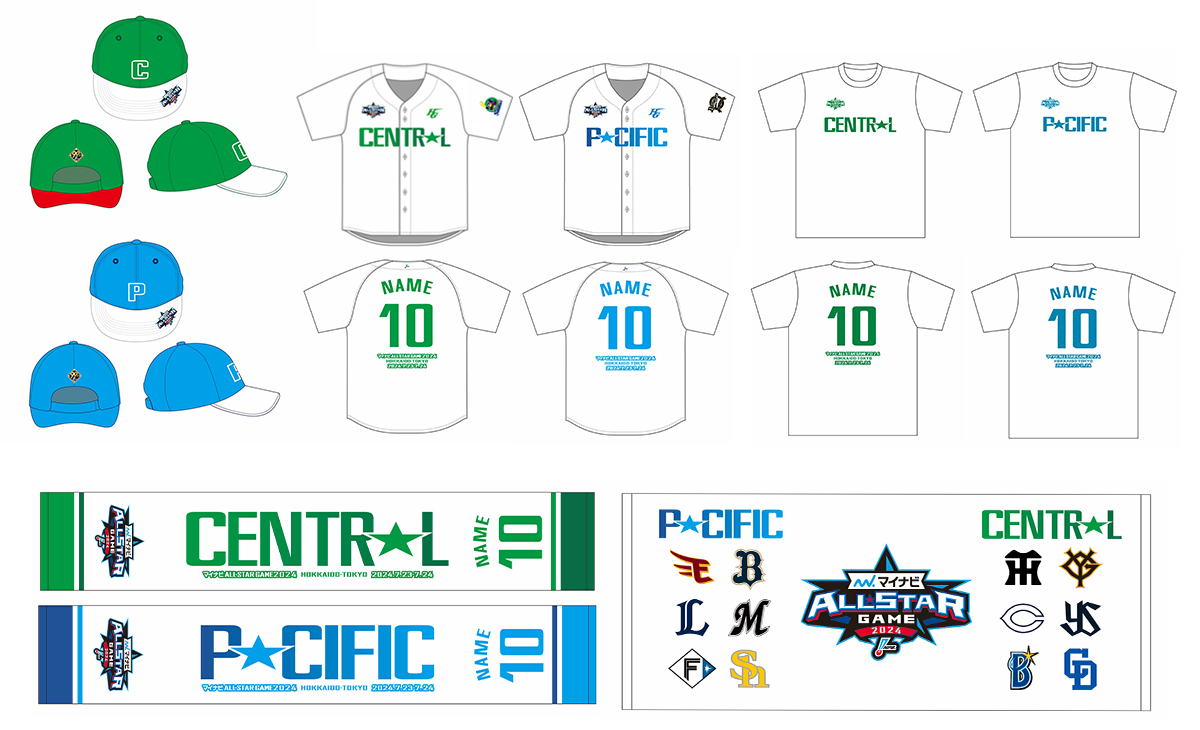 合わせて大会ロゴ・12球団ロゴ・12球団マスコットがデザインされた、マイナビオールスターゲーム2024グッズを販売いたします。