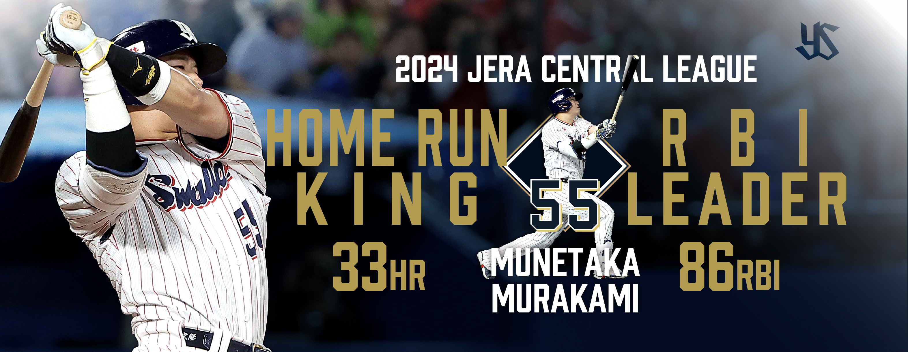 JERA セントラル・リーグ 2024シーズンにおきまして、村上選手が「最多本塁打者賞」と「最多打点者賞」、長岡選手が「最多安打者賞」とサンタナ選手が「最高出塁率者賞」を受賞しました。これを記念した記念グッズをOfficial Net Shop限定で販売します。