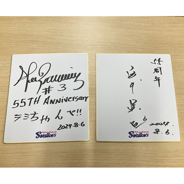 ヤクルト球団設立55周年を記念して行われたレジェンドOBファーストピッチにて、レジェンドOBの皆さまから直筆サイン入り色紙・サインボールのプレゼント!