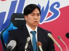 19日(木)、現役ドラフトで加入した矢崎拓也投手の入団会見を行いました。背番号は41です。