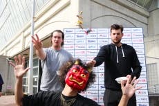 また、この日はランバート投手、バウマン投手の新外国人選手2名が、節分の豆まきに初挑戦。豆まきを終えると両選手は「(ランバート投手)やる前までは、どういうものかがあまりわかりませんでしたが、すごく面白かったです。今夜、節分について色々と調べてみようと思います。(バウマン投手)新しいことをするのは好きなので、すごく良い経験になりました」と日本の文化を楽しむ姿を見せてくれました。