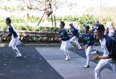 室内練習場でのストレッチを終えると、メイン球場にて晴天の下でウォーミングアップを実施。その後、投手陣は陸上競技場へ移動し、キャッチボールを行い、野手陣はメイン球場でバッティング、キャッチボール、ノックなどのメニューを消化します。投手陣はサブグランドでの投内連携を終えると、階段ダッシュ4本と坂道ダッシュ2本を実施します。キャンプも残すところあと2日となったこの日も、選手同士で喝を入れ合いながら、厳しいトレーニングをこなしていきます。野手陣はバッティング練習を終えると、個別練習へ。室内でのバッティングや外野ノックなど、ここまでの実践で出た課題と向き合い、練習に励みます。階段ダッシュ、坂道ダッシュを終えた投手陣は、今キャンプ初の、メイン球場でのバッティング練習へ。金久保投手、高梨投手、下川投手など、多くの投手が柵越えを披露すると、球場のファンからは大きな歓声が上がりました。その後は投手陣も個別練習を行い、この日の練習を終えました。