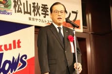 レセプションでは、林田哲哉球団代表取締役社長が「こんな盛大な歓迎会を開いていただき、誠にありがとうございます。今日はサンケイスポーツを開くと、チームが松山空港にて大歓迎を受けている写真が大きく載っていました。皆さまの愛情に御礼を申し上げます。2週間という期間ですが、自らそれぞれの課題をしっかりまとめ上げて、春までに乗り越えていこうというテーマで松山にお邪魔させていただいております。この21名がスワローズを変えてくれるだろうと思っています。ぜひこの2週間、若い選手たちの練習ぶりをご覧になって、期待していただければと思います」と感謝の言葉とこの来季への意気込みを語りました。