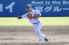 全体でのウォーミングアップ、コンディショニングを終えると、投手陣はキャッチボール、ブルペンでの投球、牽制などを行います。一方の野手陣はキャッチボール、シートノックとメニューを消化します。この日は、投手と野手合同の投内連携を実施。投手陣からは奥川投手、坂本投手、西濱投手、佐藤投手が参加。様々な状況を想定した、実戦的なトレーニングが行われました。その後、野手は走塁メインの1ヶ所バッティング、投手はティーバッティング、コンディショニングと午前のメニューを消化しました。