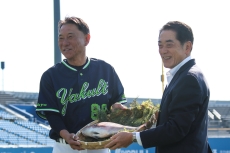 特打では、この日も池山監督がバッティングピッチャーを務めると、打席に入った鈴木選手が柵越えを連発。観客席からも拍手と歓声が上がりました。