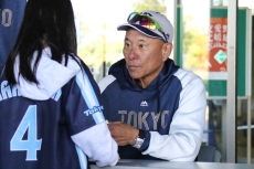 午前の練習を終えると、サプライズで池山監督のサイン会が開催されました。サイン会が行われた球場正面には、老若男女問わず、たくさんのファンが集まり、長蛇の列ができていました。