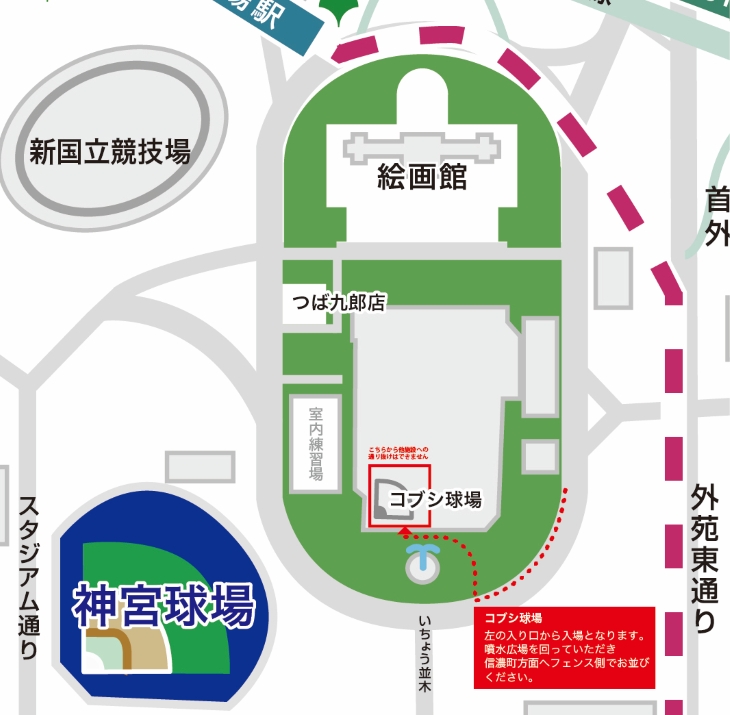 ※お待ちいただく際は、球場側門から新国立競技場方面へお並びください
