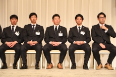 多くの関係者を招いて行われた「2025東京ヤクルトスワローズ納会」。連盟表彰の荘司投手には応援各社から金一封が贈られました。後援会表彰として、橋本選手(ファームホープ賞)、岩田選手と山野投手(努力賞)、内山選手、オスナ選手(敢闘賞)、そしてMVPに村上選手。さらに球団表彰には田中選手(ホープ賞)、大西投手と古賀選手(努力賞)、星投手、内山選手(敢闘賞)、村上選手(特別賞)が選出されました。