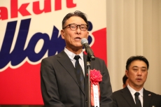 表彰式では、林田哲哉球団代表取締役社長が登壇し「今年はシーズン最初に皆さまから、熱い激励の言葉をいただきました。今年はどうなるかと思っていましたが、ファンの皆さまと喜びを共にするゲームがちょっと少なかったかなという結果になってしまいました。来年は、少しでも皆さまと共に喜び合えるような試合がしたいということで、池山監督をはじめ、選手、コーチ、チーム全員でしっかりと練習していくことと思います。球団としては、チームの力が発揮できるように、環境の整備等を、口だけではなく実行しなければならないと思っています。一つ一つ勝ちを積み重ねて、来年のこの場では、良い報告ができるようにやっていきたいと思います」と来季への意気込みを語りました。
