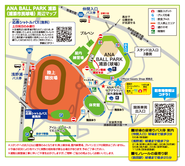キャンペーンブースは、サブグラウンドから球場へ向かう坂の下(MAP青星の箇所)に出展します