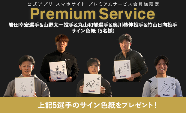 武岡龍世選手&丸山翔大投手のサイン入り松山限定燕パワーユニホームをプレゼント!