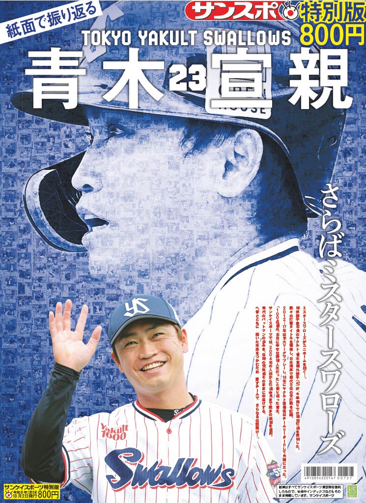 青木宣親選手の現役引退を記念し、これまでの活躍をサンケイスポーツの紙面で振り返る特集号を販売します。