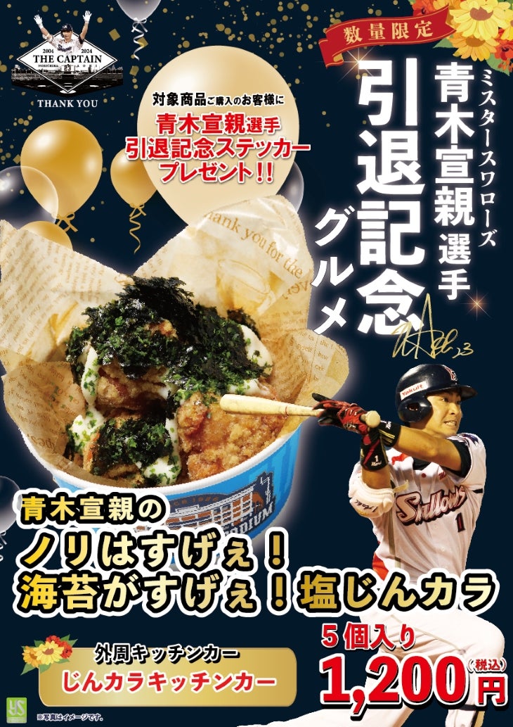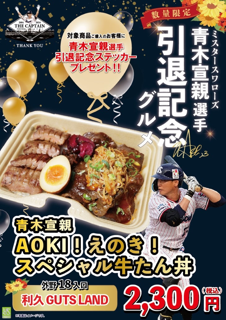 記念グルメをご購入のお客様には、引退記念ステッカーを1枚プレゼント!(全8種からランダム)